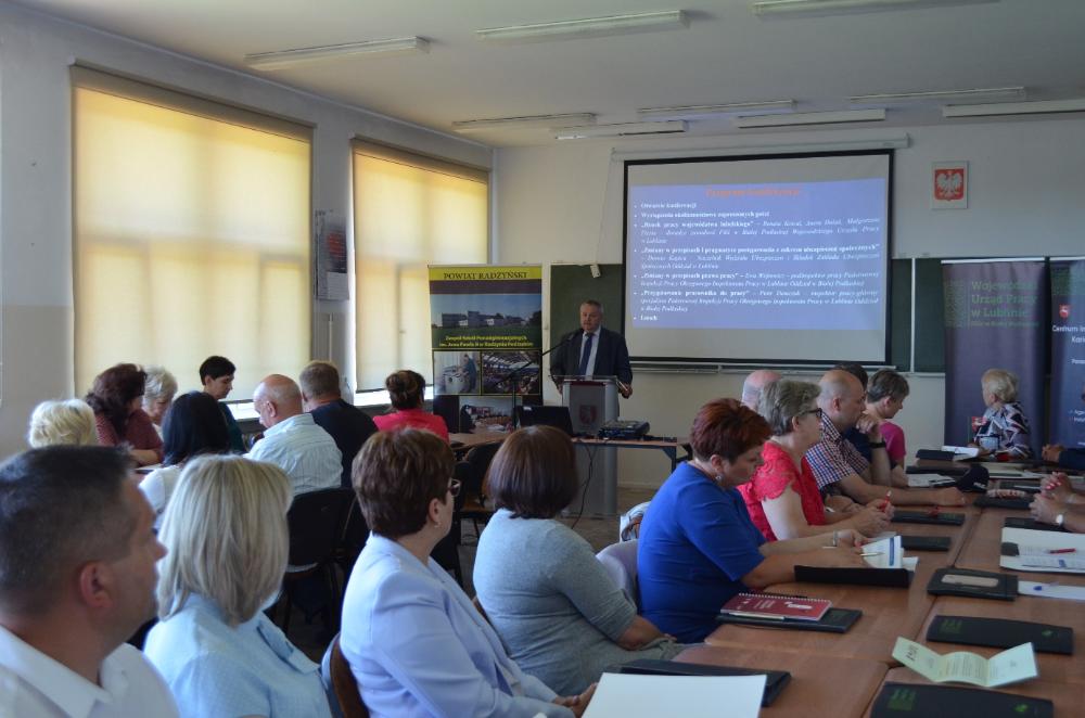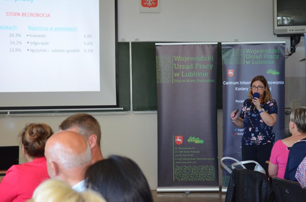 Rynek pracy województwa lubelskiego zaprezentowała Pani Renata Kowal – doradca zawodowy ds. poradnictwa zawodowego w WUP w Lublinie Filii w Białej Podlaskiej. Analizy branżowe przeprowadzone w województwie lubelskim przedstawiły z kolei Pani Małgorzata Piesta i Pani Aneta Doluk – doradcy zawodowi z Filii WUP w Białej Podlaskiej. Do udziału w konferencji zaproszono również przedstawicieli Państwowej Inspekcji Pracy Okręgowego Inspektoratu Pracy w Lublinie Oddziału w Białej Podlaskiej oraz Zakładu Ubezpieczeń Społecznych Oddziału w Lublinie. Pan Piotr Demczuk – inspektor pracy - główny specjalista PIP wystąpił z prelekcją „Przygotowanie pracownika do pracy", podczas której wskazał obowiązki jakie spoczywają na pracodawcy podczas zatrudniania kandydata do pracy. Pani Ewa Wójtowicz – nadinspektor pracy z PIP przedstawiła „Zmiany w przepisach prawa pracy i zawieranie umów cywilnoprawnych". Natomiast Pani Dorota Kapica – naczelnik Wydziału Ubezpieczeń i Składek w ZUS Oddziału w Lublinie omówiła „Zmiany w przepisach i pragmatyce postępowania z zakresu ubezpieczeń społecznych". Podczas konferencji eksperci służyli pomocą i wyjaśniali problematyczne kwestie uczestnikom. Oprócz materiałów przygotowanych przez WUP w Lublinie Filię w Białej Podlaskiej uczestnicy mogli również skorzystać ze stoiska Lokalnego Punktu Informacyjnego Funduszy Europejskich w Białej Podlaskiej.