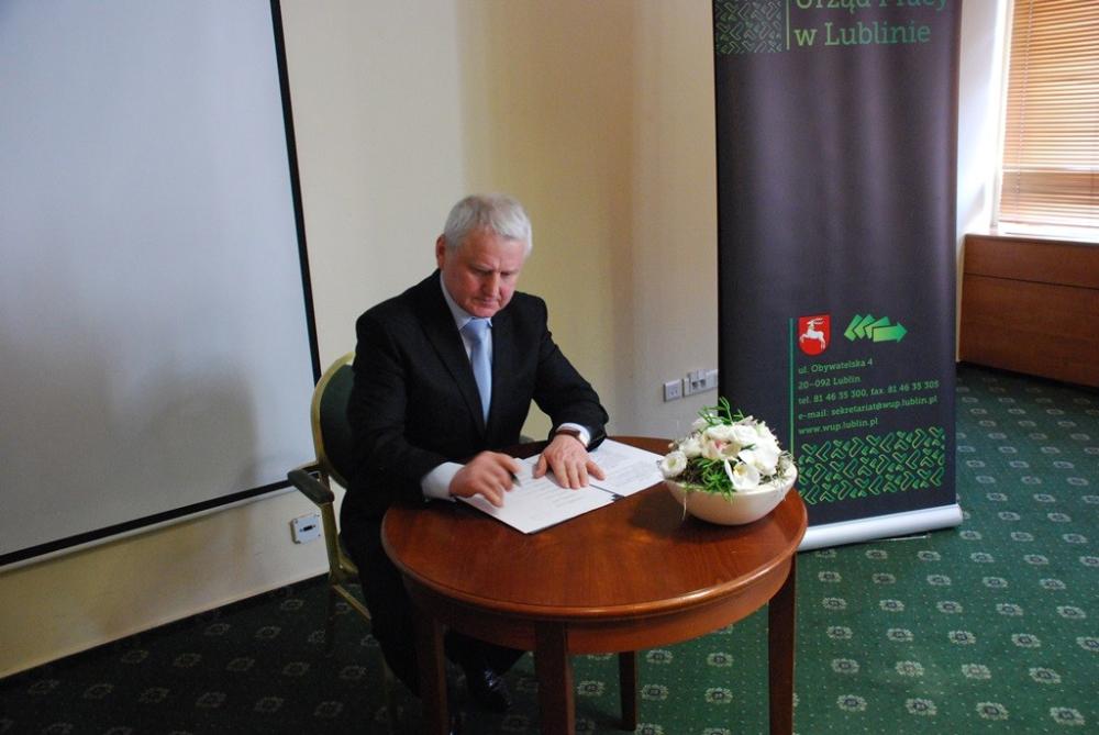 Realizując rekomendacje Regionalnego Planu Działań na Rzecz Zatrudnienia na 2014 r., w dniu 28 lutego 2014 roku Wydział polityki Rynku Pracy Wojewódzkiego Urzędu Pracy w Lublinie zorganizował Konferencję inaugurującą Porozumienie partnerskie zawarte w 95-tą rocznicę powstania publicznych służb zatrudnienia. W obecności m. in. Pana Jacka Męciny Sekretarza Stanu w Ministerstwie Pracy i Polityki Społecznej, Pana Krzysztofa Hetmana Marszałka Województwa Lubelskiego i Pana Krzysztofa Grabczuka Wicemarszałka Województwa Lubelskiego oraz przedstawicieli władz, samorządów powiatowych i przedsiębiorców z terenów Lubelszczyzny, nastąpiło uroczyste podpisanie Porozumienia w sprawie utworzenia i funkcjonowania w województwie lubelskim Partnerstwa Lokalnego na rzecz Promocji Zatrudnienia i Przedsiębiorczości.